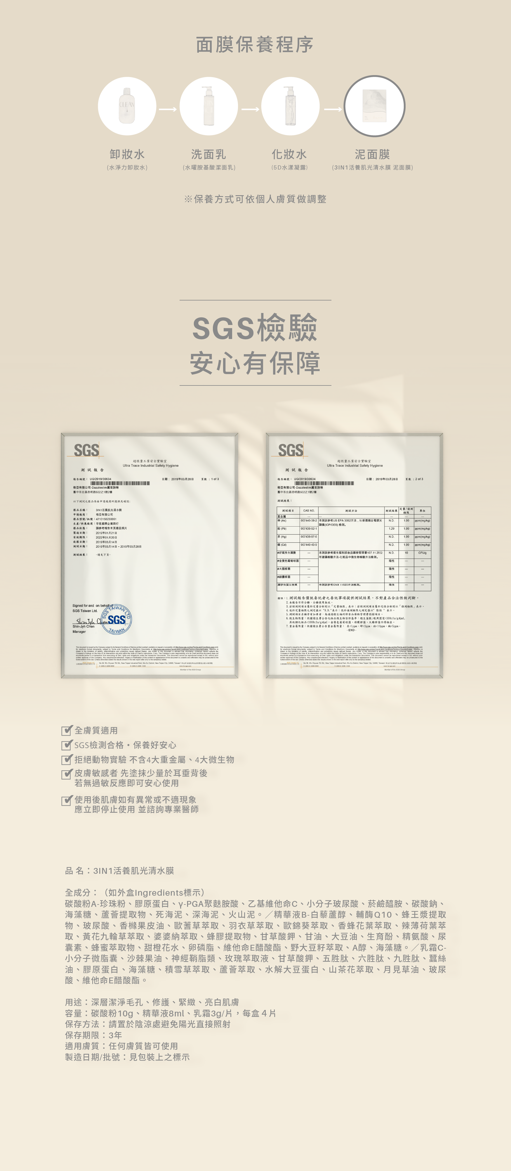 3 IN 1 活養肌光清水膜 | 泥面膜